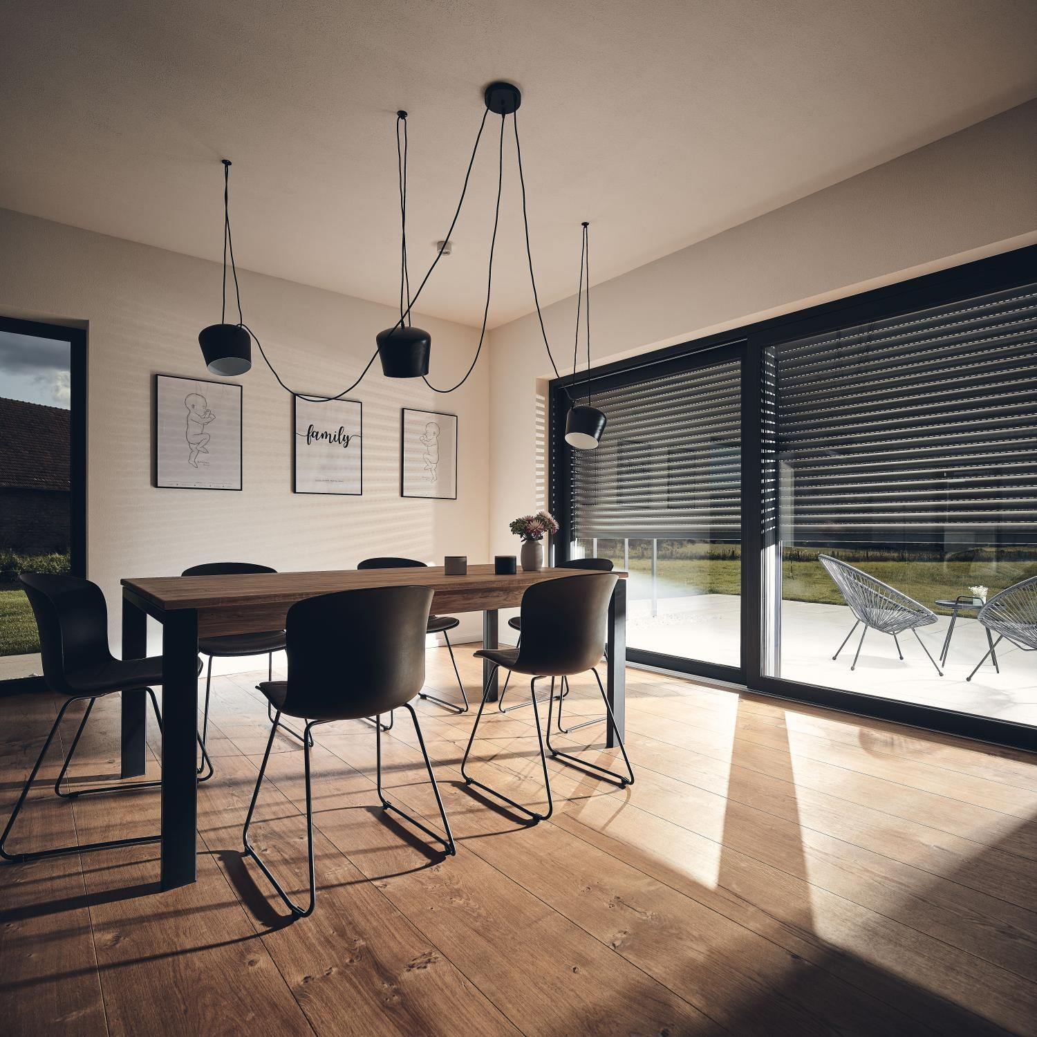 Die Vorteile der ROMA Rollläden zeigen sich besonders in ihrer präzisen Lichtregulierung – von vollständiger Abdunkelung bis hin zu blendfreier Tageslichtnutzung. Für entspannten Schlaf oder Blendschutz am Arbeitsplatz bieten die Rollläden effektiven Schutz vor direkter Sonneneinstrahlung und störenden Blendeffekten. Wenn die Rollladenprofile voll geschlossen sind, wird der Raum komplett abgedunkelt, ohne sichtbare Lichtschlitzöffnung. Für diejenigen, die nicht ganz im Dunkeln sein möchten, lässt sich die Lamelle in eine Zwischenposition bringen: Kleine Öffnungen erlauben sanftes Tageslicht, um den Raum zu erhellen. Auf diese Weise schaffen ROMA Rollläden in jeder Situation die ideale Lichtatmosphäre und bieten spürbar mehr Komfort.
